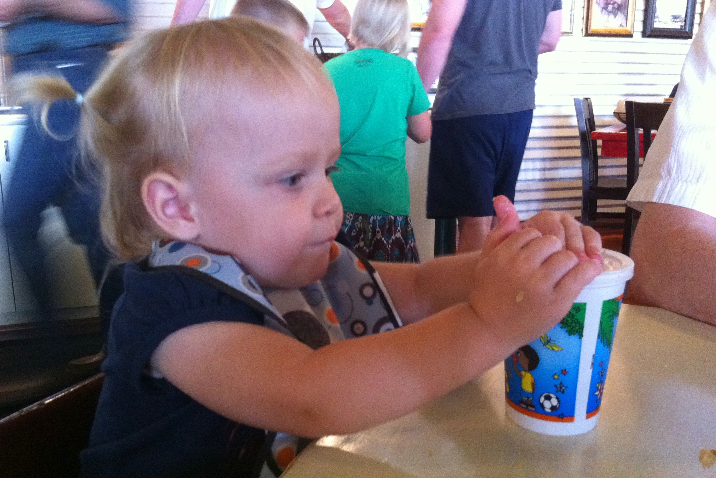 All the employees were very friendly and went out of their way to be helpful, especially to families with small children. When Hannah threw her sippy cup (ours from home) on the floor, an employee picked it up and offered to take it back and wash it for us. We were about to leave anyway, so I didn’t take him up on it, but I was impressed with the genuine service that was shown to us and other families there. Those of us with little kiddos appreciate all the help we can get!