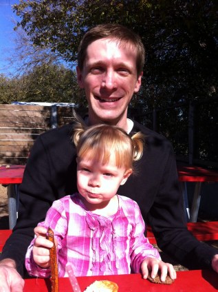 I have a super-fun birthday – New Year’s Eve! This year, it was a pretty laid-back Saturday. The weather was amazing, and we went out to lunch at an outdoor organic burger place with a big playscape.