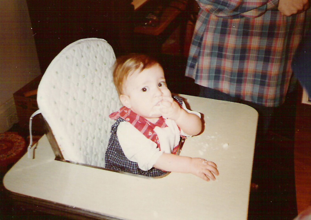 Here’s my first birthday. I’m blissfully eating cake, unaware that in six short months I will cease to be the center of the universe.