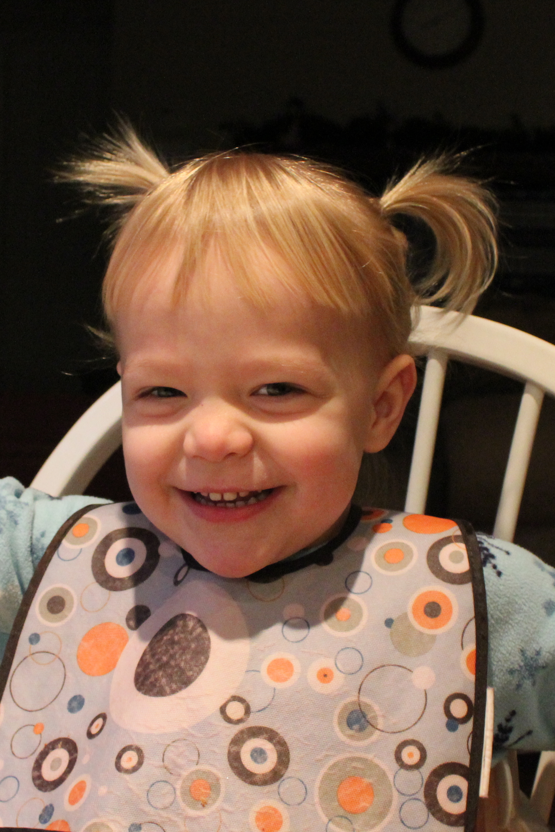 There was a crime – against Hannah’s bangs. They were getting in her eyes, so I decided to be brave, borrow some hair scissors and take it on myself.