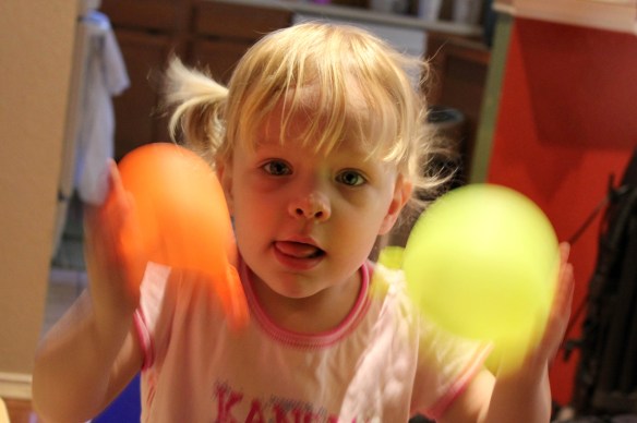 It was a half-birthday present from Aunt Kristen, and it turned into a little project. The box was full of filled balloons with the instructions to pop the balloons for a surprise. Hannah could shake the balloons and hear something inside.