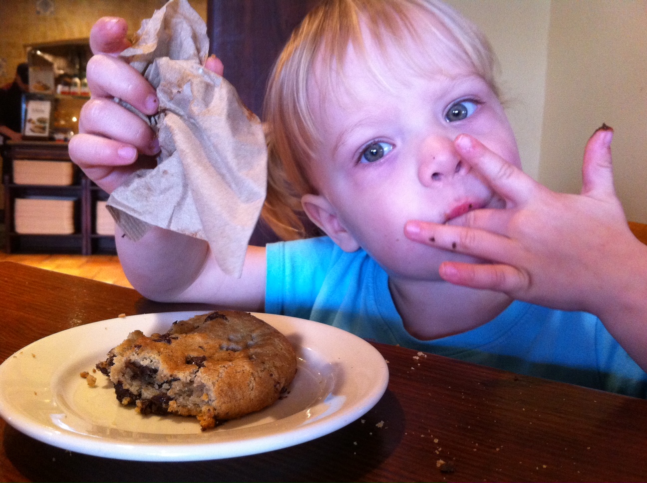 So after a successful shoe stop, it was lunch time, and I decided to swing by Chick-fil-A on the way home. As we waited in the drive-thru line to order, Hannah asked me to roll her window down. I obliged. She leaned her head toward the open window and said, “I’d like some nuggets aaaaand some lemonade aaaaand some chicken, please.”