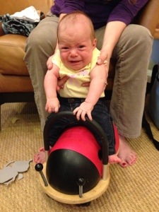 There was a rolly ladybug like our rolly bee. We decided to put Violet on it (4 wks old at the time). Not a fan.