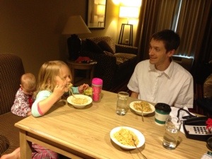 Then we had dinner. Since we had a small kitchen in our suite, I decided to be frugal and fun by making ramen noodles for supper. These were a big hit with Hannah.