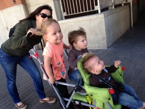 Hannah thought this was pretty fun. She spent 15 minutes catching them before moving on to the playscape. Lunch was a bit of an adventure. We got a pile of crawfish and a chicken strip plate to share. This was a lot for the little table. The guy who brought the food put a steaming bowl of gravy right in front of Violet (dude, grrrr) which of course she immediately stuck her hand into. At the exact moment she started crying, Hannah started shrieking that the (cooked) crawfish she was holding pinched her. The guy did have some serious claws.