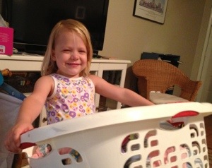 We have a laundry basket with rubber handles on three sides, so it can be carried with two hands or one hand and a hip. Hannah was studying it intently and asked, “Why does it have three handles? We only have two hands.”