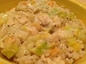 Another meal whose picture did not live up to its tastiness was creamy (and dairy-free!) chicken and leeks on rice.