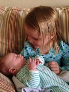This afternoon, Hannah and I went over to a friend’s house to exchange Christmas gifts and ended up staying awhile to watch baby sister and little brother while big brother went to urgent care for some crazy stomach pains. It was cute to watch Hannah and little brother play together, he is about six months older than Violet, so it is fun to get a glimpse of how playing will be different in a few months at our house. And of course sweet newborn time.