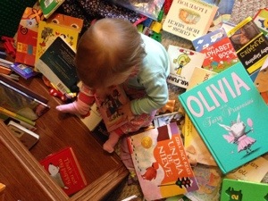 December 14: Violet likes to look at books. And pull them all off the shelf. A favorite baby game.