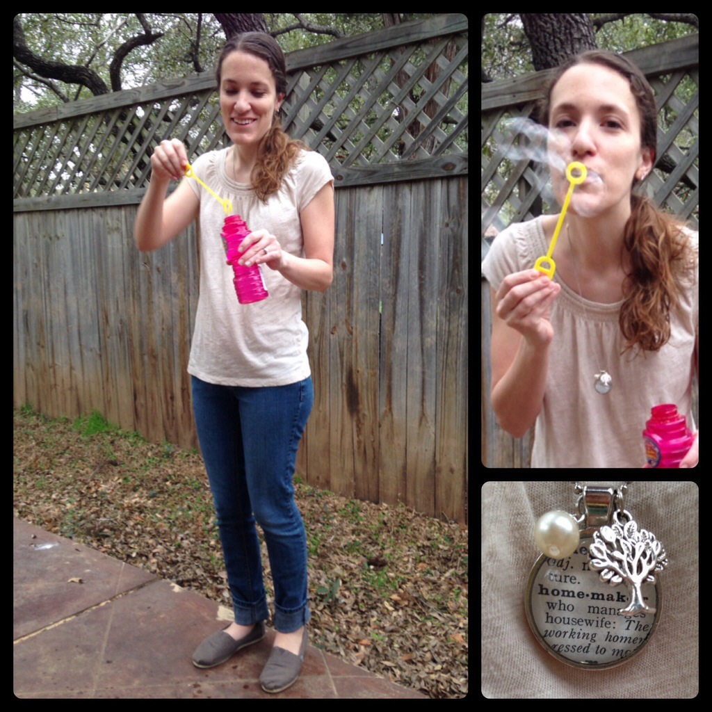 Outfit – shirt: LOFT, jeans: Kohls, shoes: Toms, necklace: KraftyKash