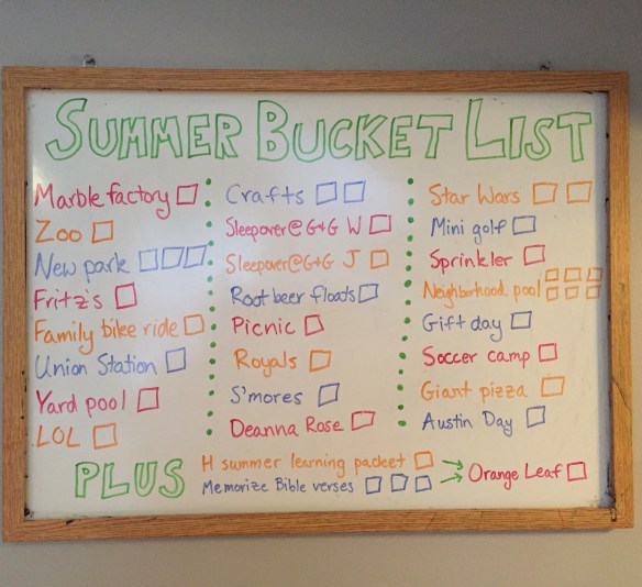 Often I have ideas like “It would be fun to do that sometime…” then I promptly forget whatever it was and continue with my rut routine. This way, we’ve got some visual reminders for the summer. Some are big outings, some are small summer joys. I’ll keep you posted on our bucket list adventures.