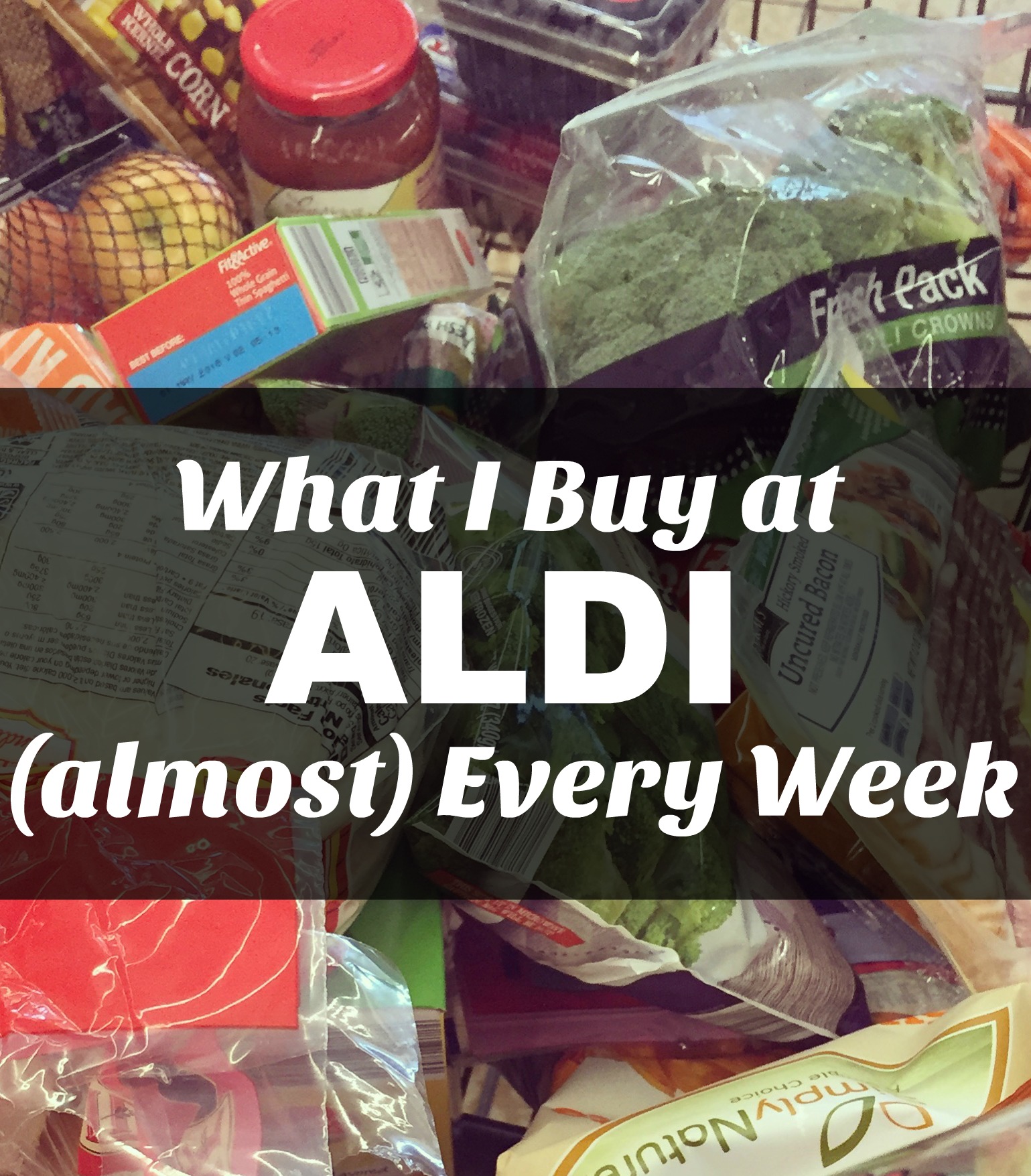 Then my friends started talking about Aldi. I’d thought Aldi was full of cheap junk food, but turns out there is a lot of healthy, affordable food to be found on those tiny narrow aisles. So here is a look at what I buy on a regular basis. These items are in my cart almost every week.