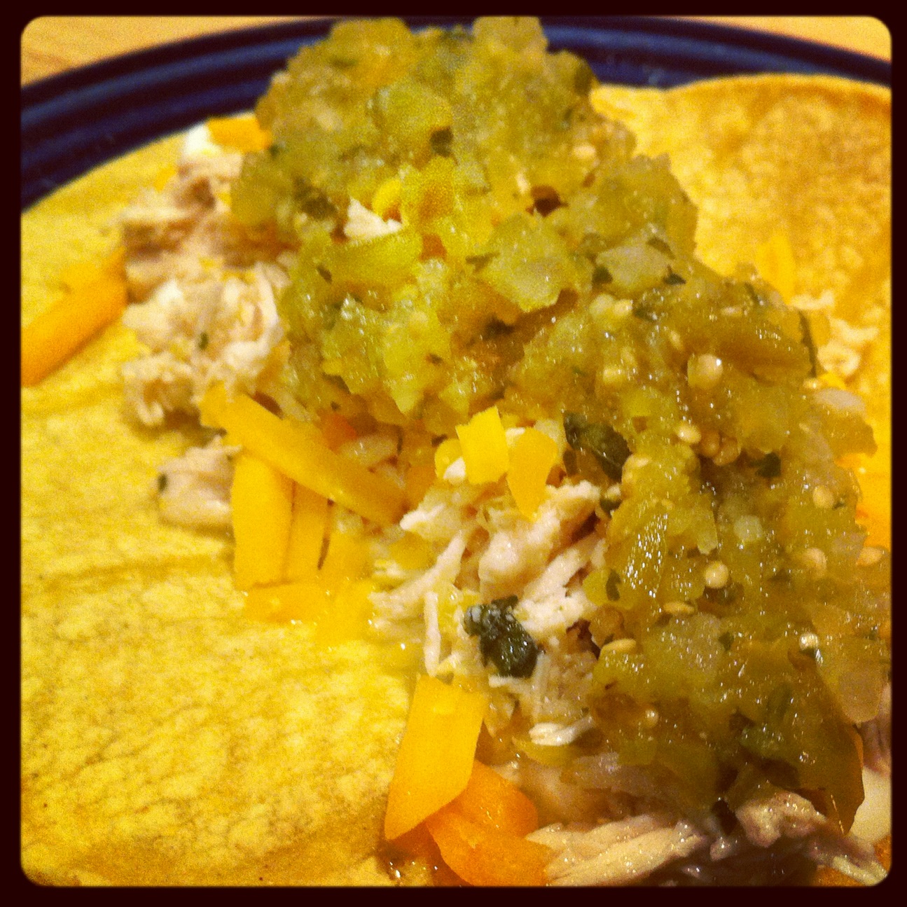 Chicken tacos with verde salsa – I made my favorite shredded chicken in the slow cooker. For the roasted verde salsa, I borrowed this recipe from Tyler Florence. Hannah is literally inches away from me for most of my kitchen adventures, and I give her as many projects as possible. I found that husking tomatillos is an awesome job for a 2-year-old. It was very easy but gave her quite a sense of accomplishment. We assembled the tacos on corn tortillas with sour cream, chicken, cheese and verde salsa. This is one of Brett’s new favorites. CSA ingredients: tomatillos, onions.