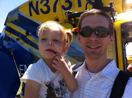 Anyway, it was a really fun day (though would have been miserable without the nice 80 degrees and slight breeze). Skipping nap time was a little rough as demonstrated by our attempt at a daddy-daughter shot in front of a medical chopper.