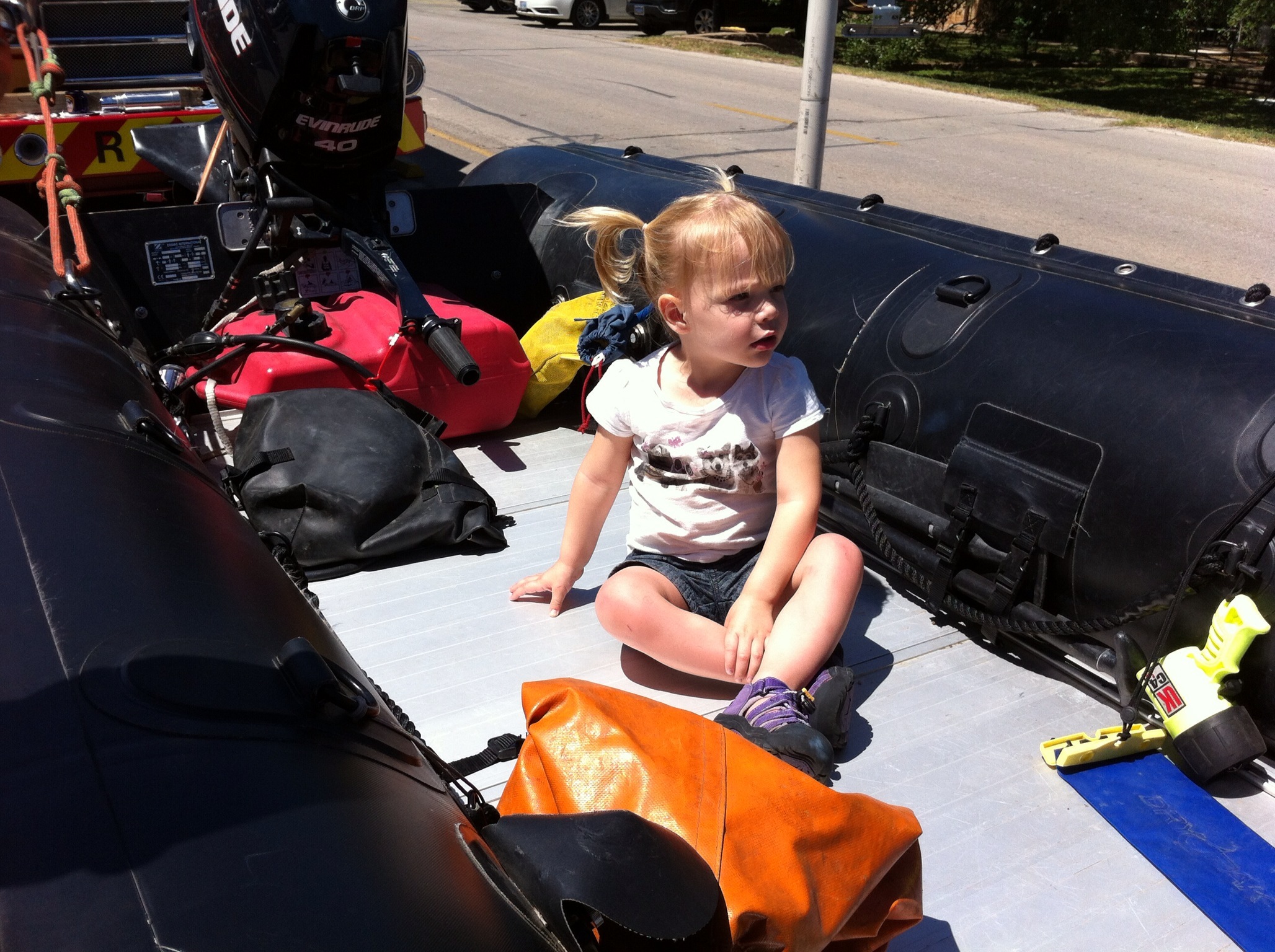 Hannah loves all flying things, so we were pretty sure this would be a hit. Parking was busy, but we were able to take a little train from the lot to the main event area. Then we popped Hannah in the Bob (really glad we brought it since there was so much walking) and checked out the booths and displays. There were firetrucks and water rescue boats to explore.
